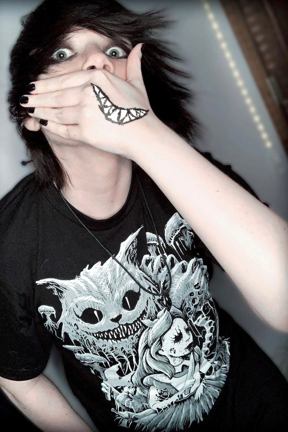 Murder your way into Wonderland in this sickening shirt! Fall down the rabbit hole in the heavy metal design, featuring Alice and the White Rabbit haunting Wonderland with knives in hand. The Cheshire Cat lurks above them—his striped tail composed of spinal bones. Sinfully soft to please your wickedly whimsical heart.