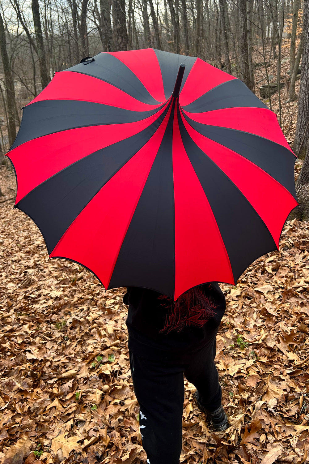 Batwing Pagoda Umbrella [BLACK/RED STRIPED]