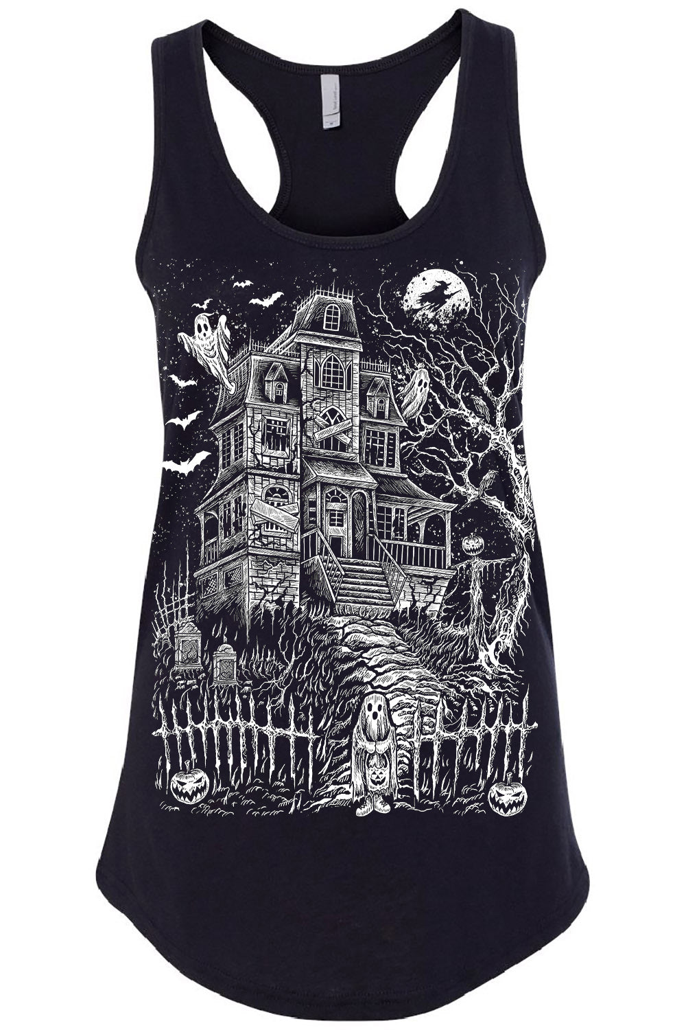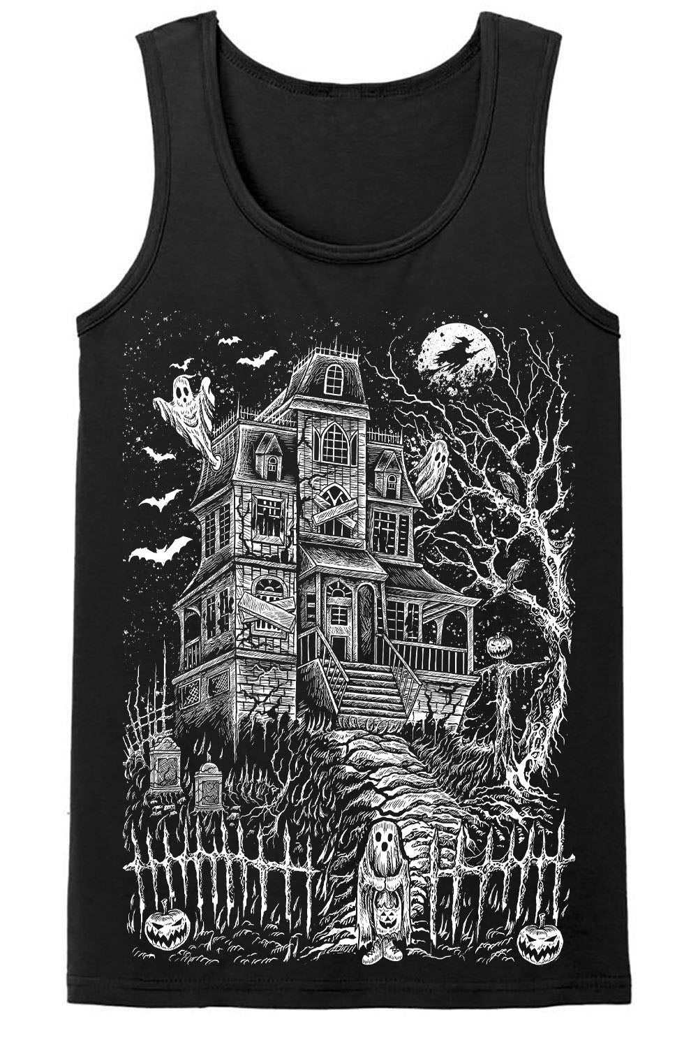 When witches go riding, and wood creaks undaunted, ghosts chant in whisper, "This house is haunted."