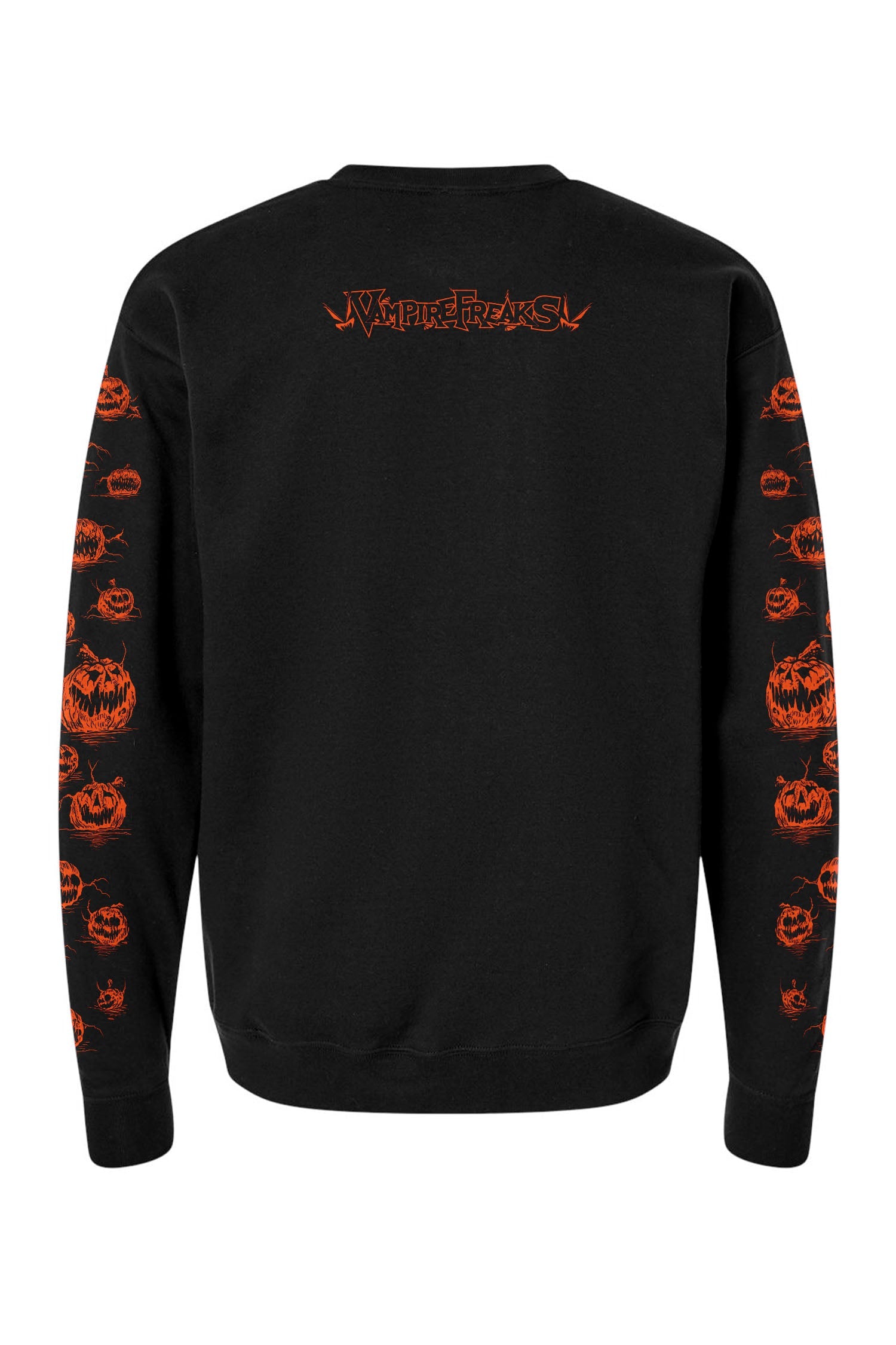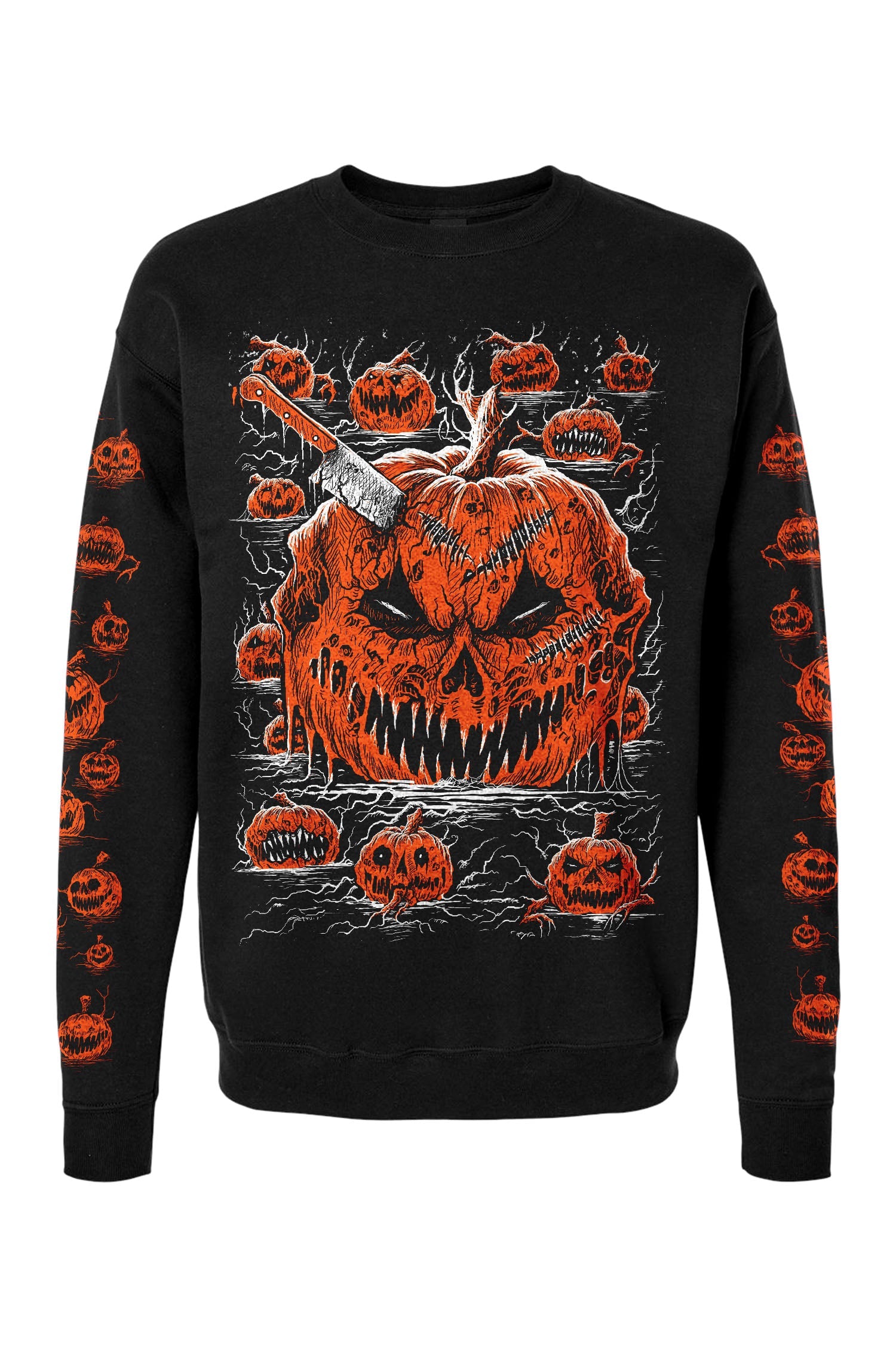 Stitched and stabbed by the butcher’s knife, the pumpkins were gutted & drained of life. Doomed to sleep till Halloween, when the witches woke them with a scream. Revenge they took on all they found, till their pumpkin patch turned to a burial ground.